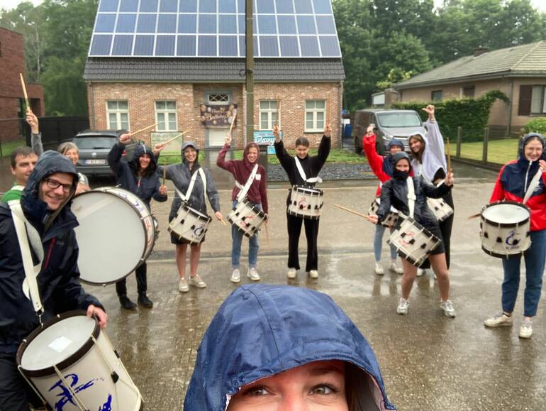 Veerle: De evenementen brengen niet alleen sfeer voor onszelf, maar brengen de buurt ook samen. Als we wandelen, is dat ritme handig om goed op te stappen. Gewoon naar Scherpenheuvel wandelen, zou maar saai zijn. Ik vind het ook tof om deel uit te maken van de trommelaars, omdat ik zelf totaal niet muzikaal ben maar zo toch muziek kan maken.